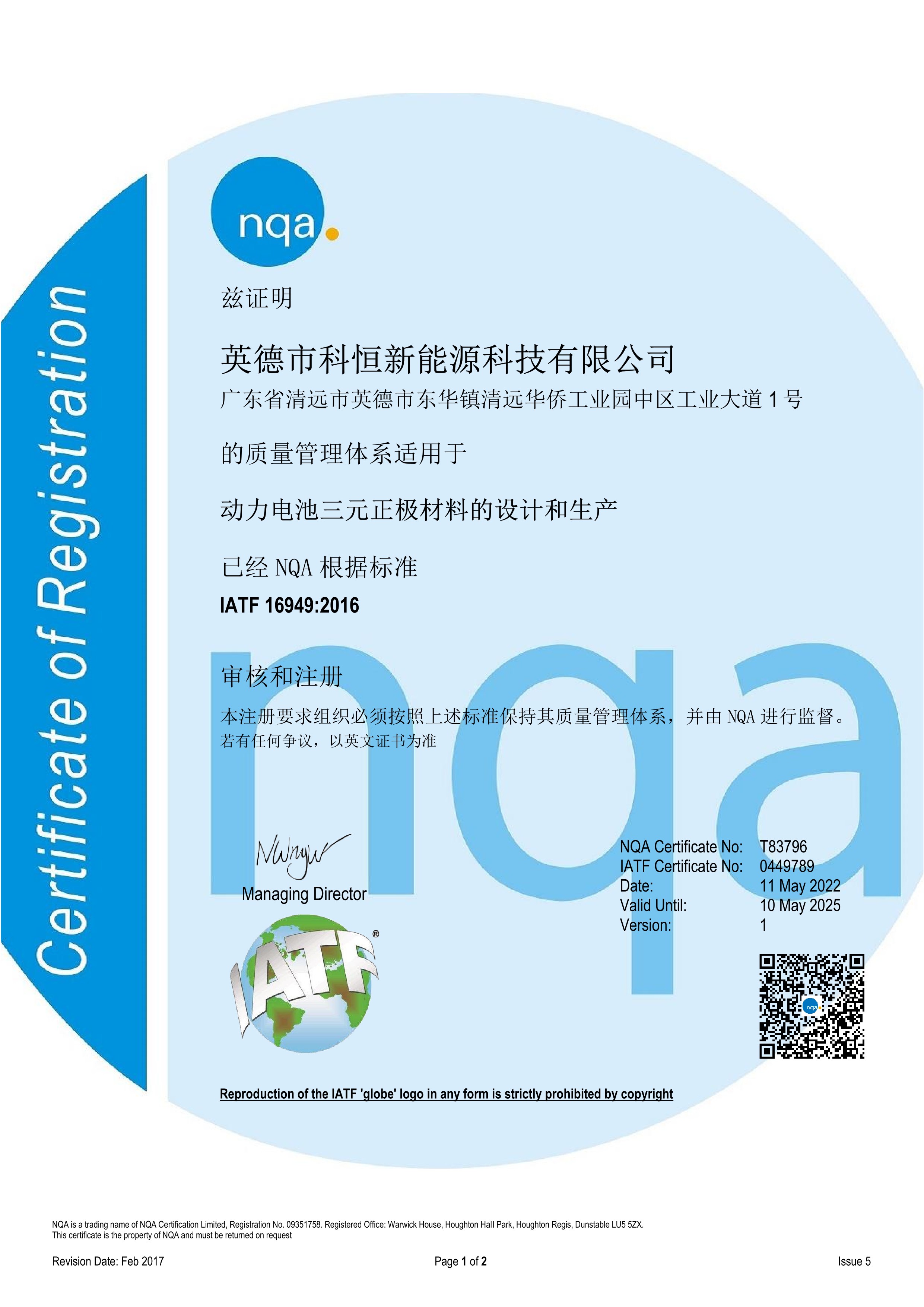 科恒堅持“科技卓越、永恒追求、質(zhì)量第一、客戶至上”的質(zhì)量方針,設(shè)立各級質(zhì)量控制體系,保證產(chǎn)品質(zhì)量。公司先后通過了ISO9001質(zhì)量管理體系認(rèn)證和ISO14001環(huán)境管理體系認(rèn)證。公司以滿足客戶需求為宗旨,以卓越的科技成果、完善的制造過程,制造一流的產(chǎn)品、增值的服務(wù)、共享的價值,讓客戶滿意。